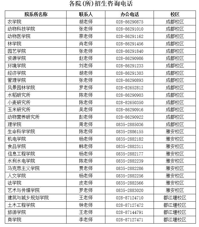 1.笔试:英语听力(100分,30分钟,全校统一命题)、专业英语测试(100分, 60分钟,按学科专业命题)和专业综合知识测试(100分,120分钟,按学科专业命题)。雅安校区和成都校区由学校统一组织,同堂考试,都江堰校区由各招生学院按要求进行复试。