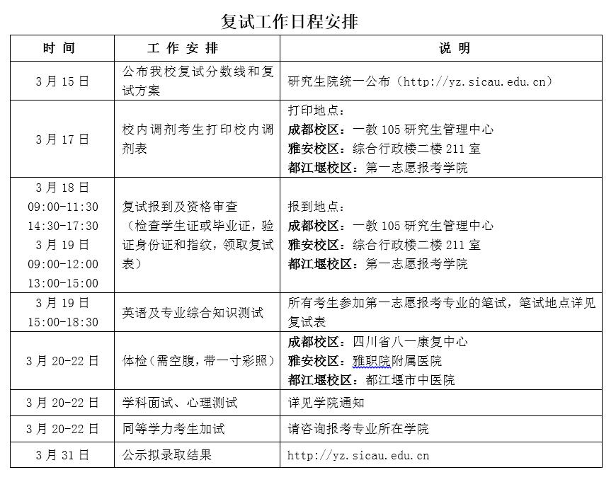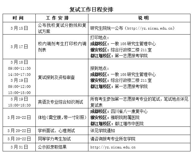 2.复试工作日程安排
