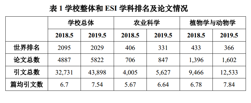 根据美国ESI(Essential Science Indicators,基本科学指标数据库)2019年5月发布的最新数据(2009.1.1-2019.2.28)显示,我校ESI学科建设水平取得较大进步。与去年同期数据比较,学校整体全球排名提升66名;农业科学排名提升75名;植物学与动物学排名提升67名。
