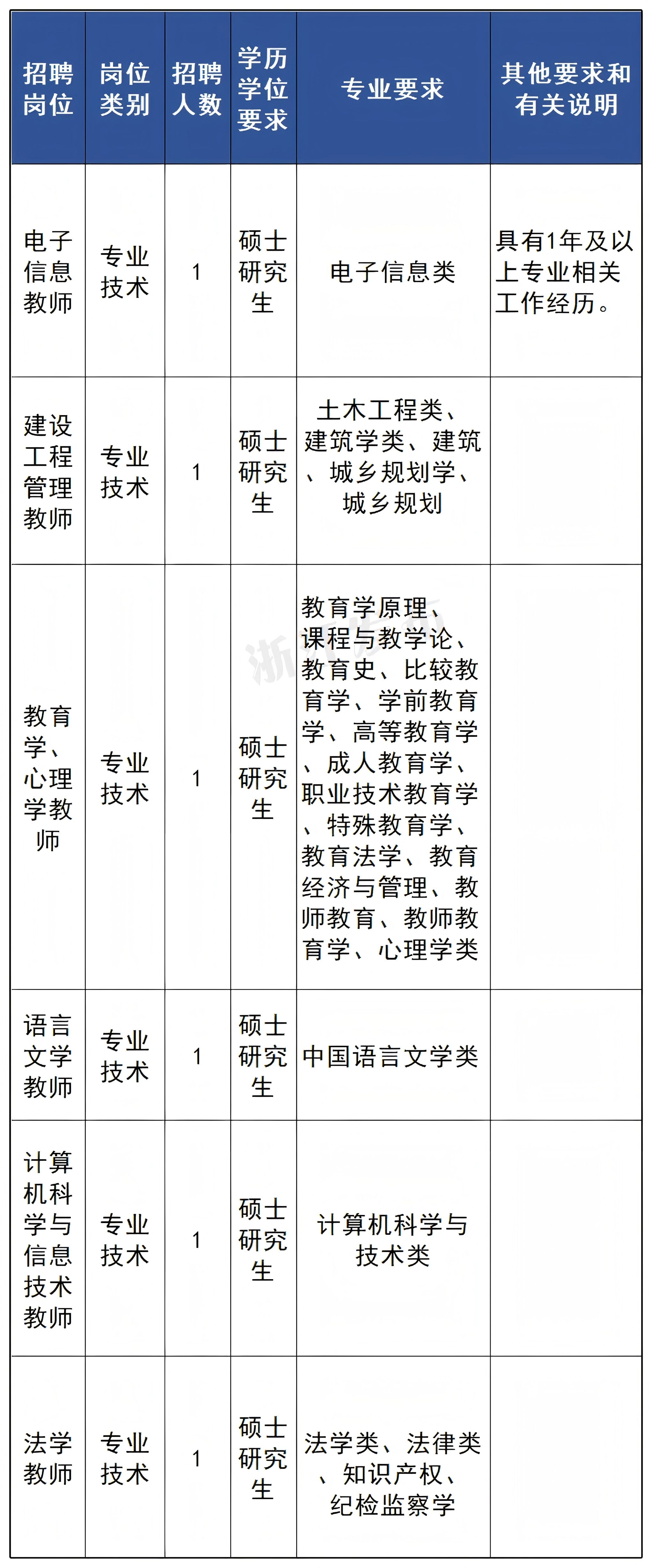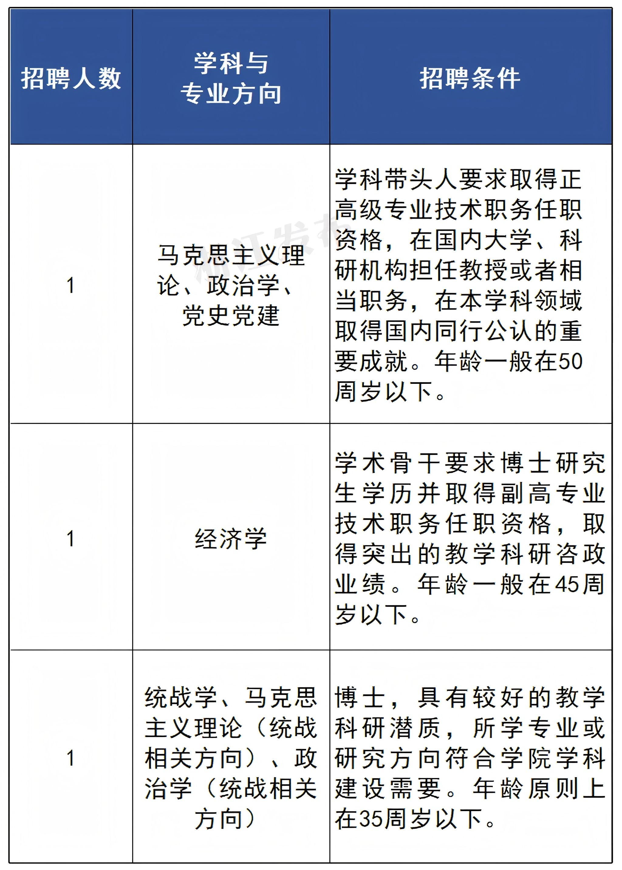 本次招聘专业技术岗专职教师3名,包括学科带头人、学术骨干以及博士。