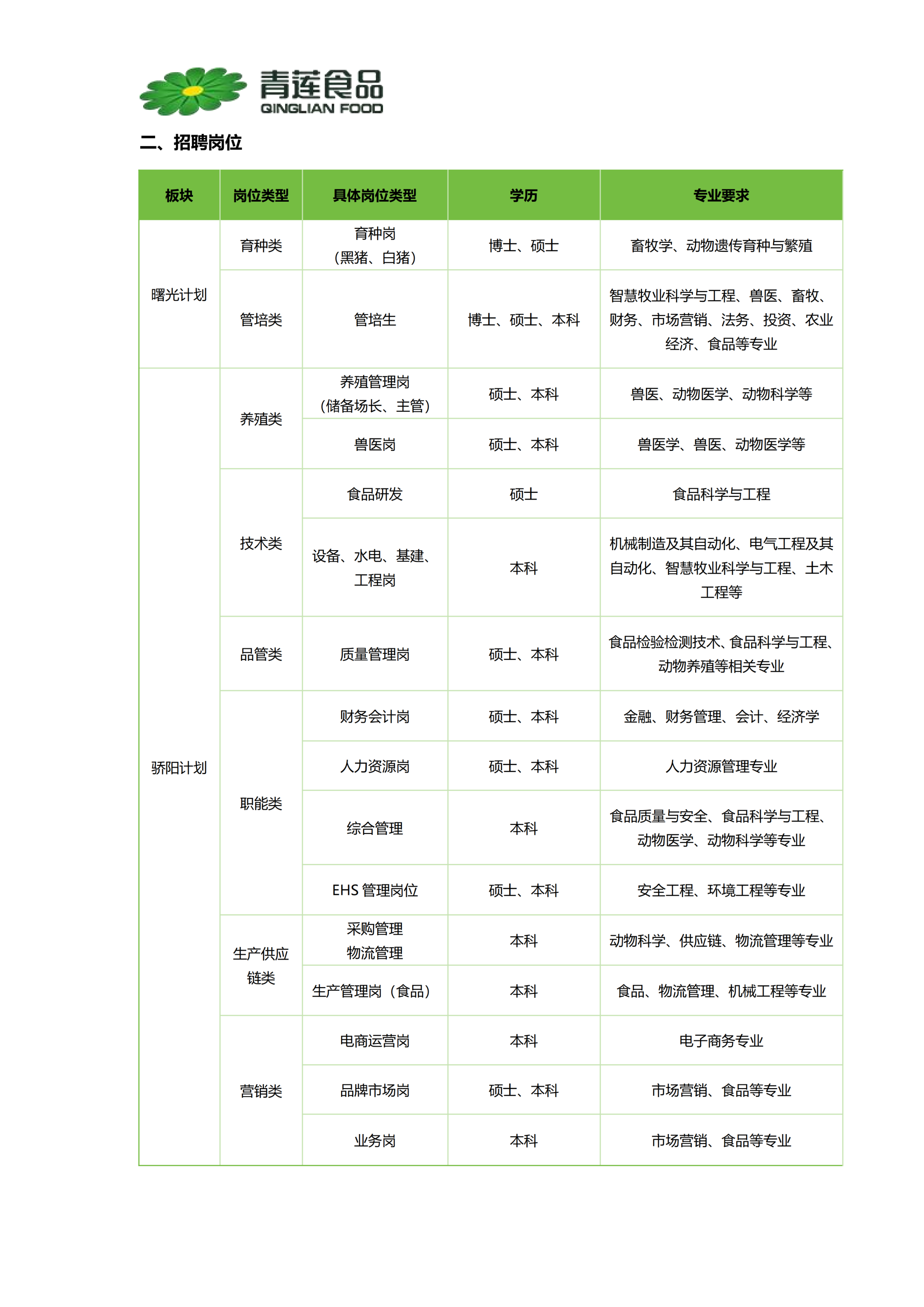 青莲集团 2026 年校园招聘简章青春“莲”未来,美味“绘”蓝图