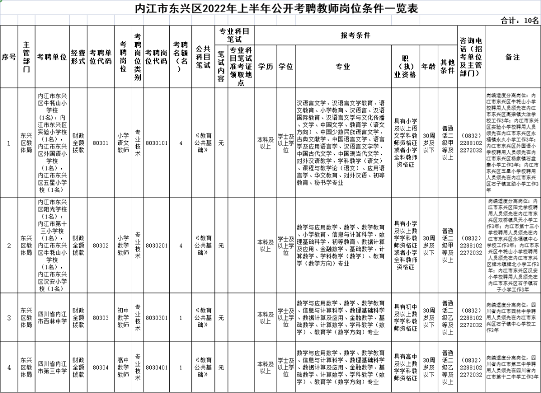 根据《事业单位人事管理条例》、《四川省事业单位工作人员招聘工作试行办法》(川人发〔2006〕9号)、《hth华体网页版登录入口_华体(中国)进一步规范事业单位公开招聘工作的通知》(川人社发〔2011〕36号)及《事业单位公开招聘违纪违规行为处理规定》(人力资源和社会保障部令第35号)等法规文件规定,按照“公开、平等、竞争、择优”的原则,2022年上半年内江市东兴区将面向社会公开考试招聘教育系统教师10名,现将有关事项集中公告如下: