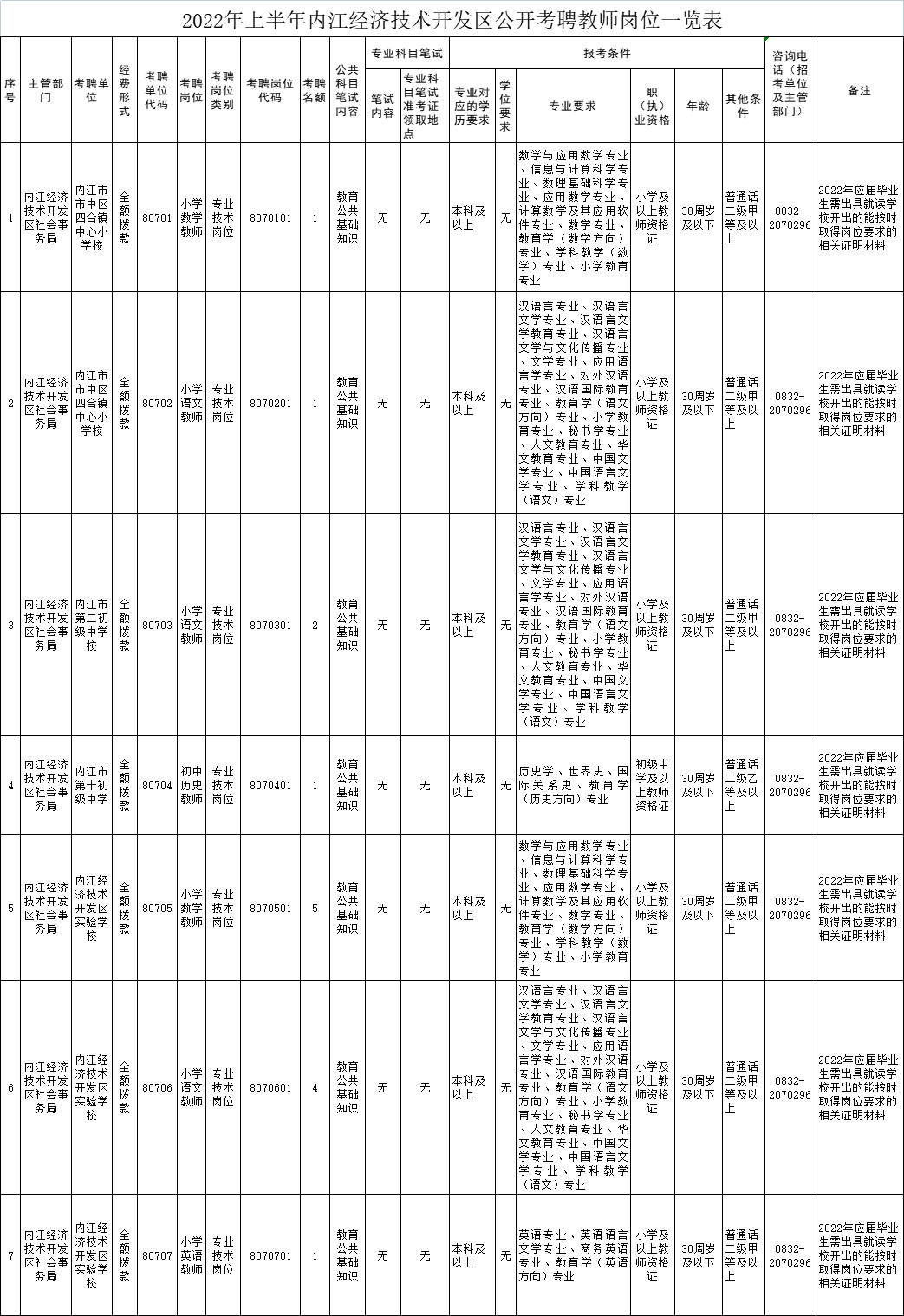 根据《事业单位人事管理条例》《四川省事业单位工作人员招聘工作试行办法》(川人发〔2006〕9号)《hth华体网页版登录入口_华体(中国)进一步规范事业单位公开招聘工作的通知》(川人社发〔2011〕36号)及《事业单位公开招聘违纪违规行为处理规定》(人力资源和社会保障部令第35号)等法规文件规定,按照公开、平等、竞争、择优原则,2022年上半年内江市市本级部分市直学校将面向社会公开考试招聘中小学教师18名。经汇总各考聘单位及主管部门意见后,现将有关事项集中公告如下:
