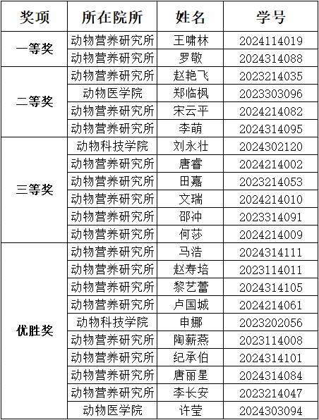 2024年四川农业大学第一届牛精英校内挑战赛于11月12日-11月13日成功举办,根据参赛选手最终竞赛成绩,现公示一、二、三等奖、优胜奖获奖选手名单,参赛选手名单见附件。