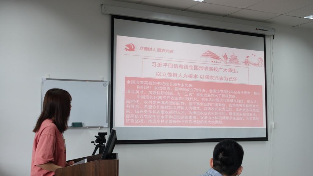 2019级研究生党支部副书记吴雨桐领学《习近平总书记给全国涉农高校的书记校长和专家代表的回信》和学校庄天慧书记、郑有良校长,学院杨世义书记hth华体网页版登录入口_华体(中国)阅读回信后的感悟和思考。与会党员展开了热烈的交流讨论,2018级杨淆同志结合自己的研究内容谈到:“习近平总书记在这个时间回复这样一封信,我感到十分有意义。今年是建设全面小康社会关键的一年,作为研究乡村振兴方向的同学,我感到了党中央的重视。身在农业高校,我们要心怀责任感和使命感,紧密结合专业去助力乡村振兴。第一要结合乡村的实际情况,第二要结合自己的专业知识去帮助他们思想‘减贫’”。2019级林书竹同志也分享了自己的感悟:“实施乡村振兴战略,是党的十九大做出的重大决策部署,要想实现乡村振兴,农业科技进步很关键,而农业院校是推进农业科技进步的重要力量。作为农业院校马克思主义学院的研究生,我们应该以强农兴农为己任,努力扩展自身知识面,提高自身思想境界,以身作则,引领身边的同学为实现国家富强和中华民族伟大复兴的中国梦贡献自己的力量”。