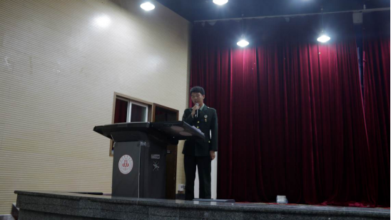 来自建筑与城乡规划学院大一学生周齐洪同学身穿军装,意气风发,他分享了自己五年的从军历程。他动情地讲述道:“伴随着尖锐的起床号角,新一天的训练又开始了,负重越野、俯卧撑、引体向上,从清晨到日暮,军队的生活永远是这么充实又疲惫……”如今谈起这些,已经退伍并考入四川农业大学工程管理专业的周同学语气中也依然满怀不舍。周同学将最美好五年奉献给了祖国,也见证了祖国国防事业的日益强大,他为国家和人民奉献出了自己最宝贵的青春。从军生涯对他而言,既是青春的回忆,也是人生的学堂。现场的同学们都为之动容,为其五年参军的决心所感动,报之以雷鸣般的掌声。