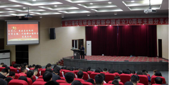 924日,为庆祝新中国成立70周年,展现当代青年学子良好风貌,进一步激发和凝聚川农学子奋进报国之志,都江堰校区研究生会在校区报告厅开展了“书写奋斗岁月·献礼七十华诞”主题分享会。活动采用分享交流的形式,由校区机关党政办副主任李晓东副教授和土木工程学院尹业兴、建筑与城乡规划学院周齐洪两位同学分享他们的奋斗经历,讲述他们与川农大共成长的故事。