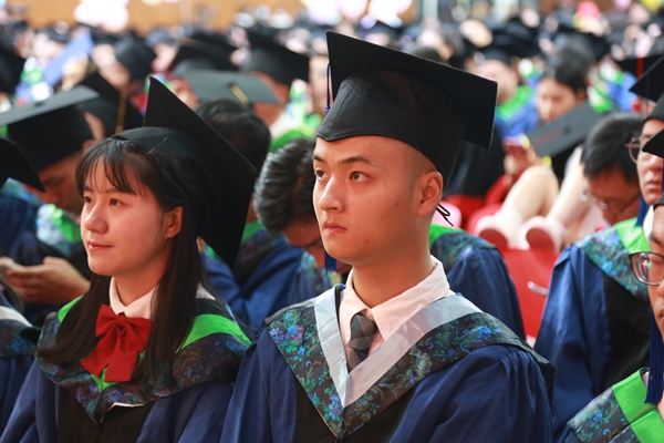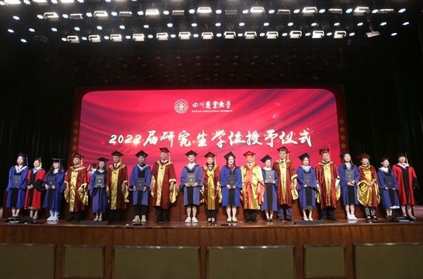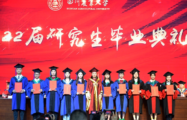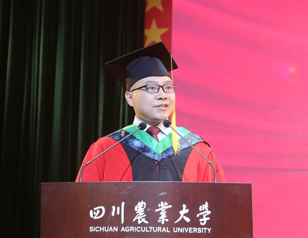 毕业研究生代表,水稻研究所作物遗传育种专业2018级博士研究生陶阳在发言中表示,母校给予的不仅有专业知识、师生情谊和科学思维,更有“川农大精神”的传承使命。不管未来身在何处,都要将个人前途和国家命运紧密结合,为实现中华民族伟大复兴贡献川农学子力量。