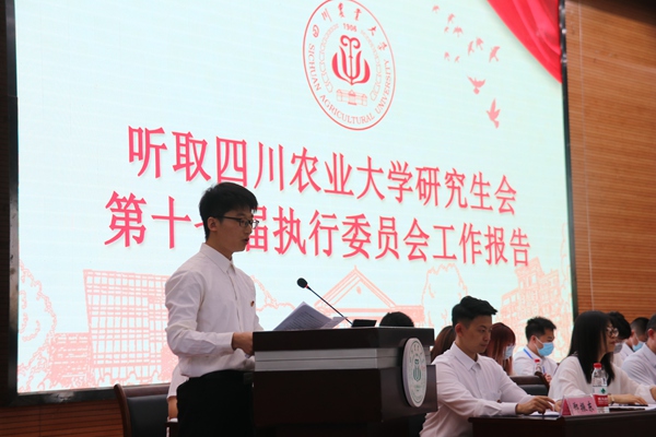 报告指出,自学校第二次研究生代表大会以及学校研究生教育会议胜利召开以来,校研究生会在校党委的正确领导下,在党委研工部的直接领导下、在学校团委的悉心指导下,坚定理想信念、强化自身建设、坚持服务奉献、赋能核心力量与广大研究生同奋斗、共追求,用青春韶华承载“兴中华之农事”的远大理想,以实际行动践行“服务三农”的使命担当。