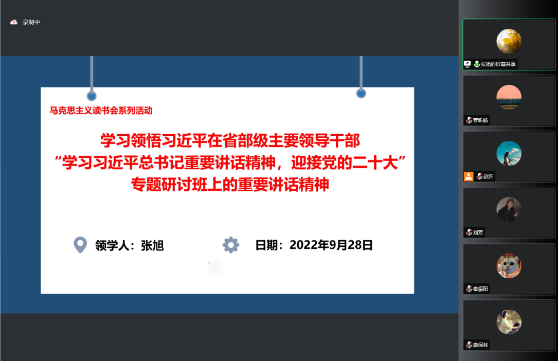 2022年9月28日下午,由马克思主义学院党委和党委研工部共同主办的四川农业大学研究生“迎接党的二十大”专题读书班(第一期)于腾讯会议线上顺利开展。